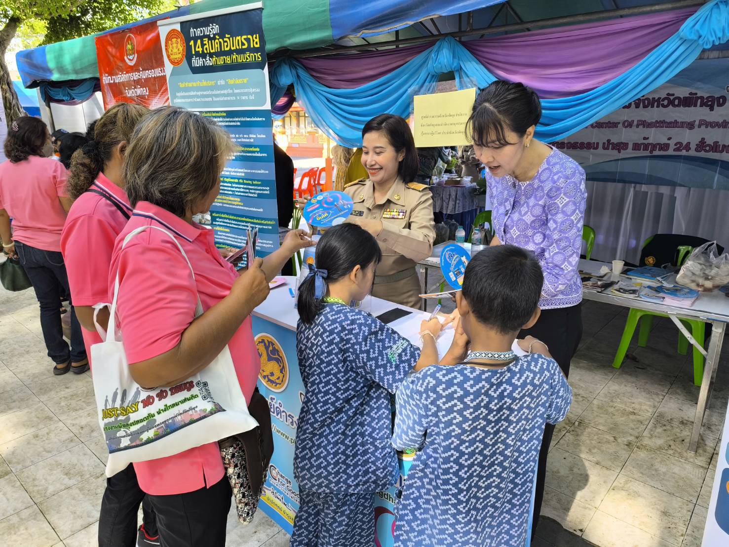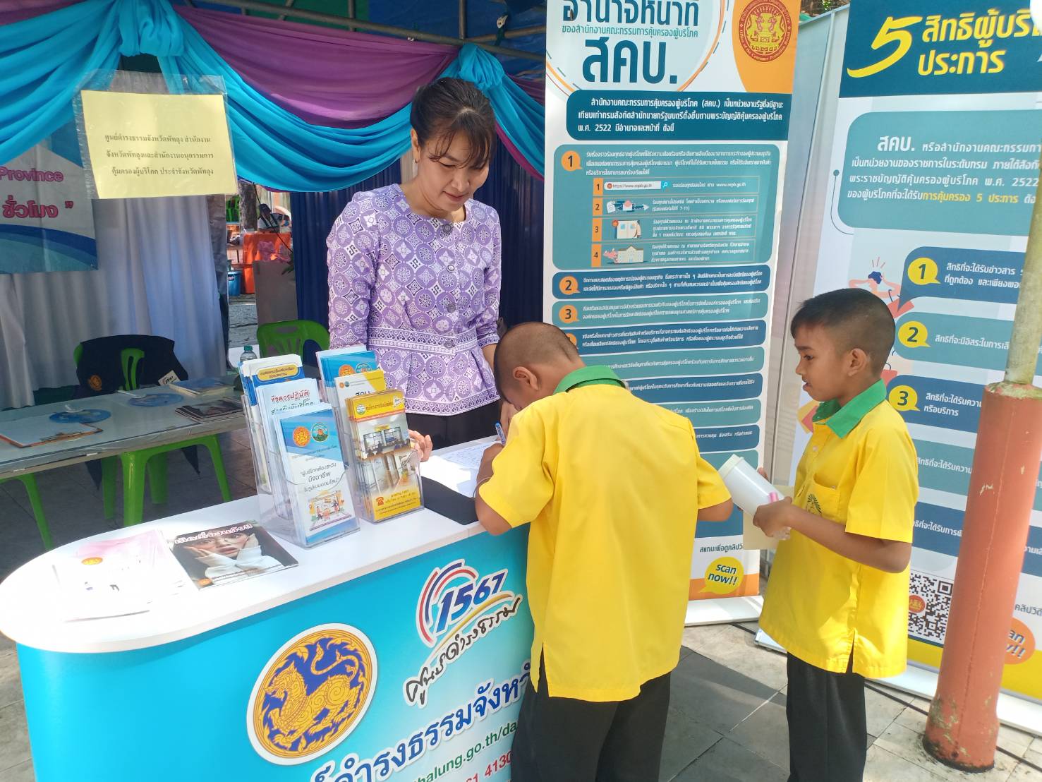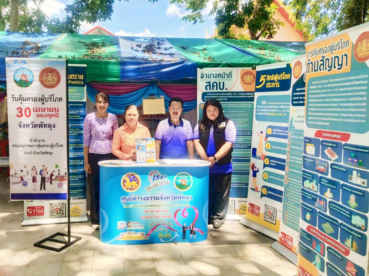 วันที่ 24 เมษายน 2568 ศูนย์ดำรงธรรมจังหวัดพัทลุง และสำนักงานคณะอนุกรรมการคุ้มครองผู้บริโภคประจำจังหวัดพัทลุง เข้าร่วมโครงการบำบัดทุกข์ บำรุงสุข สร้างรอยยิ้มให้กับประชาชน ประจำปีงบประมาณ พ.ศ. 2568 ณ วัดลานแซะ หมู่ที่ 10 ตำบลนาขยาด อำเภอควนขนุน จังหวัดพัทลุง เพื่อให้บริการประชาชน ในการรับเรื่องร้องเรียน/ร้องทุกข์ ให้คำปรึกษาปัญหาแนะนำข้อกฎหมายเบื้องต้น ให้คำปรึกษาปัญหาความเดือดร้อนด้ารการคุ้มครองผู้บริโภค ประชาสัมพันธ์ช่องทางการรับเรื่องร้องเรียน/ร้องทุกข์ และจัดนิทรรศกาลเนื่องในวันคุ้มครองผู้บริโภคไทย วันที่ 30 เมษายน ของทุกปี