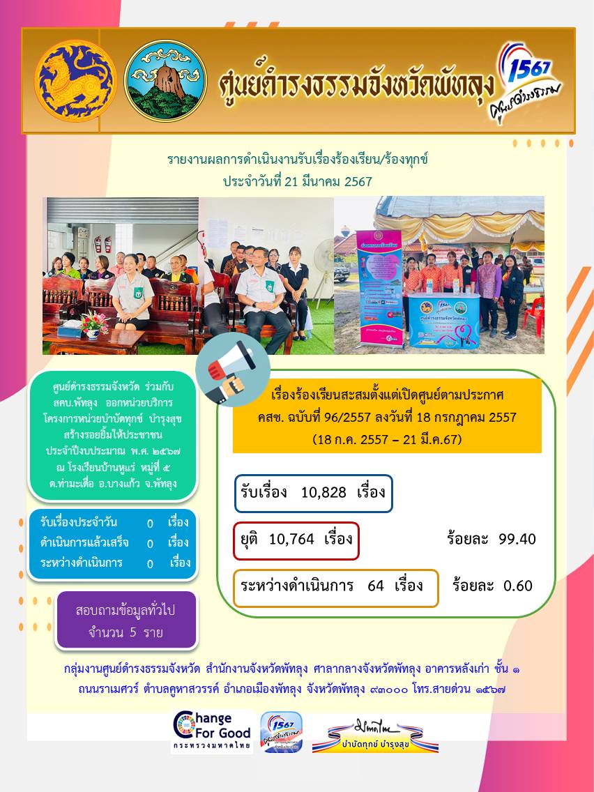 สถิติรับเรื่องร้องเรียน/ร้องทุกข์ วันที่ 21 มีนาคม 2567