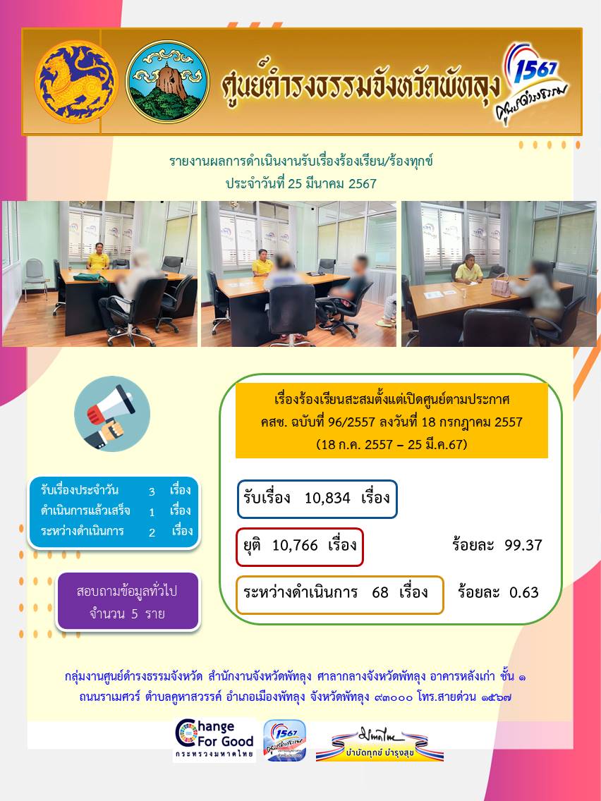 สถิติรับเรื่องร้องเรียน/ร้องทุกข์ วันที่ 25 มีนาคม 2567