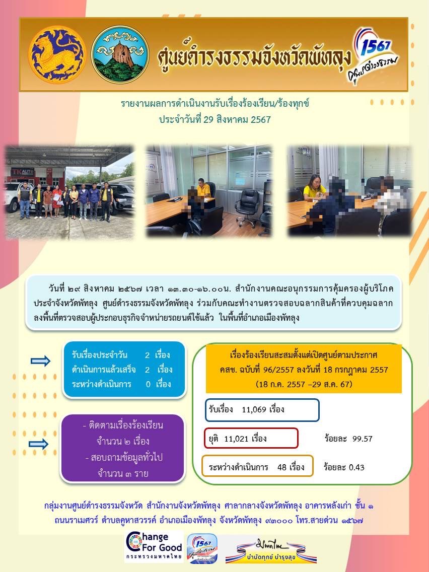 สถิติรับเรื่องร้องเรียน/ร้องทุกข์ วันที่ 29 สิงหาคม 2567
