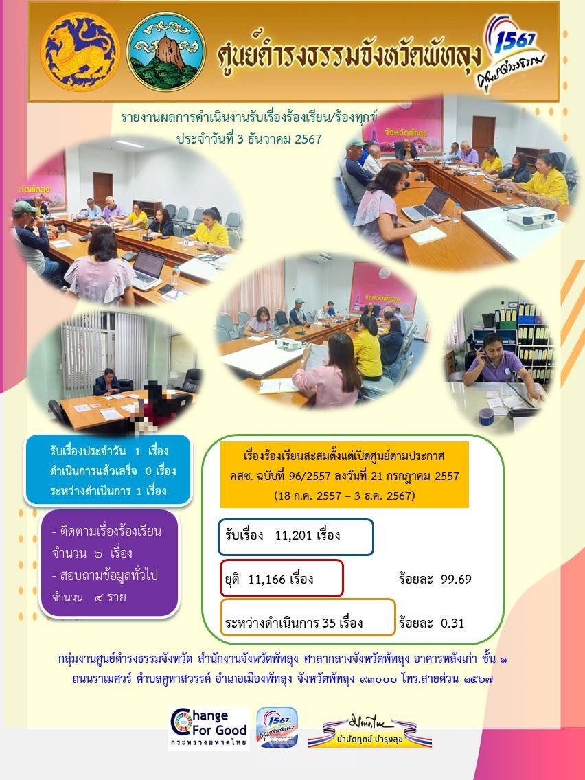สถิติรับเรื่องร้องเรียน/ร้องทุกข์ วันที่ 3 ธันวาคม 2567