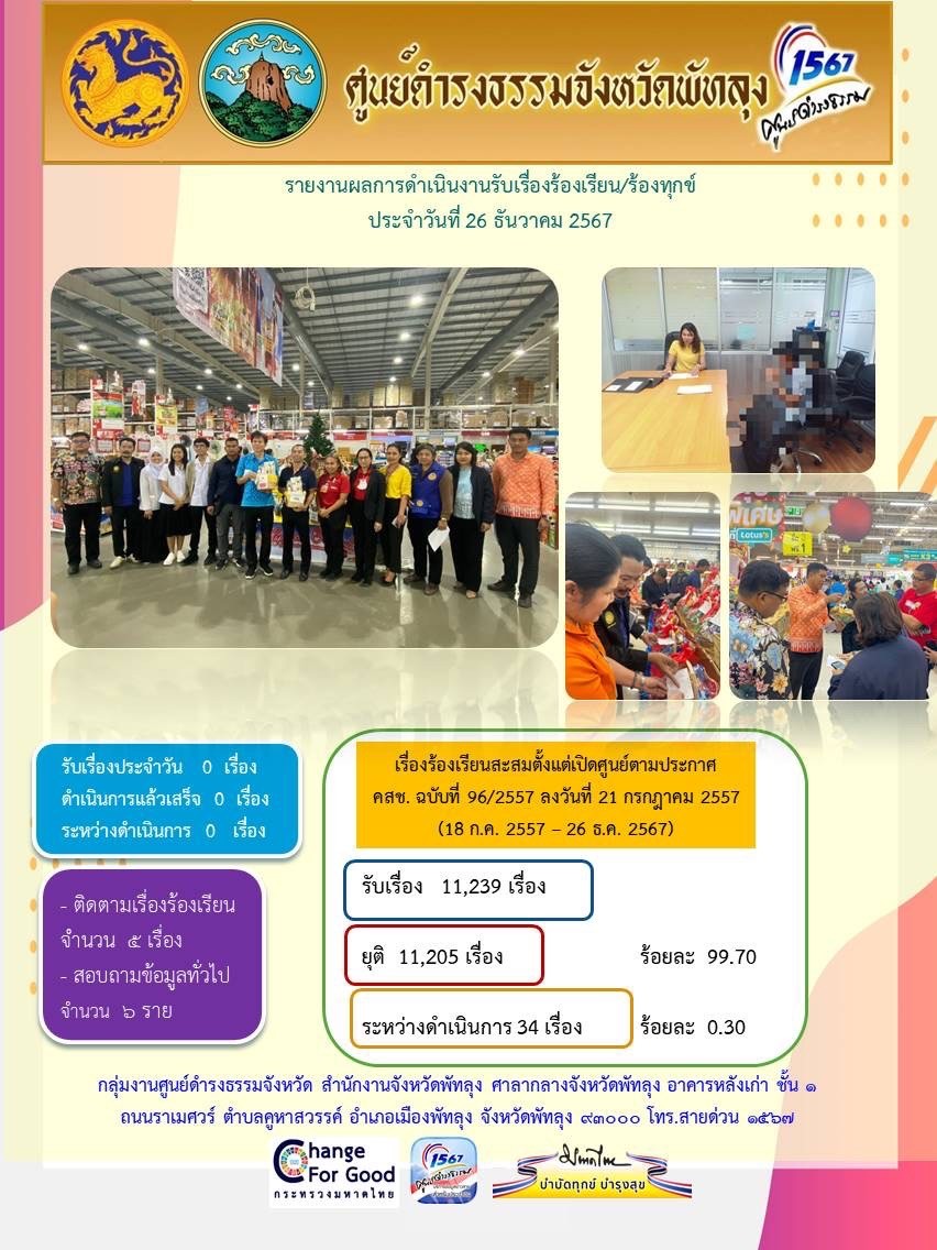 สถิติรับเรื่องร้องเรียน/ร้องทุกข์ วันที่ 26 ธันวาคม 2567
