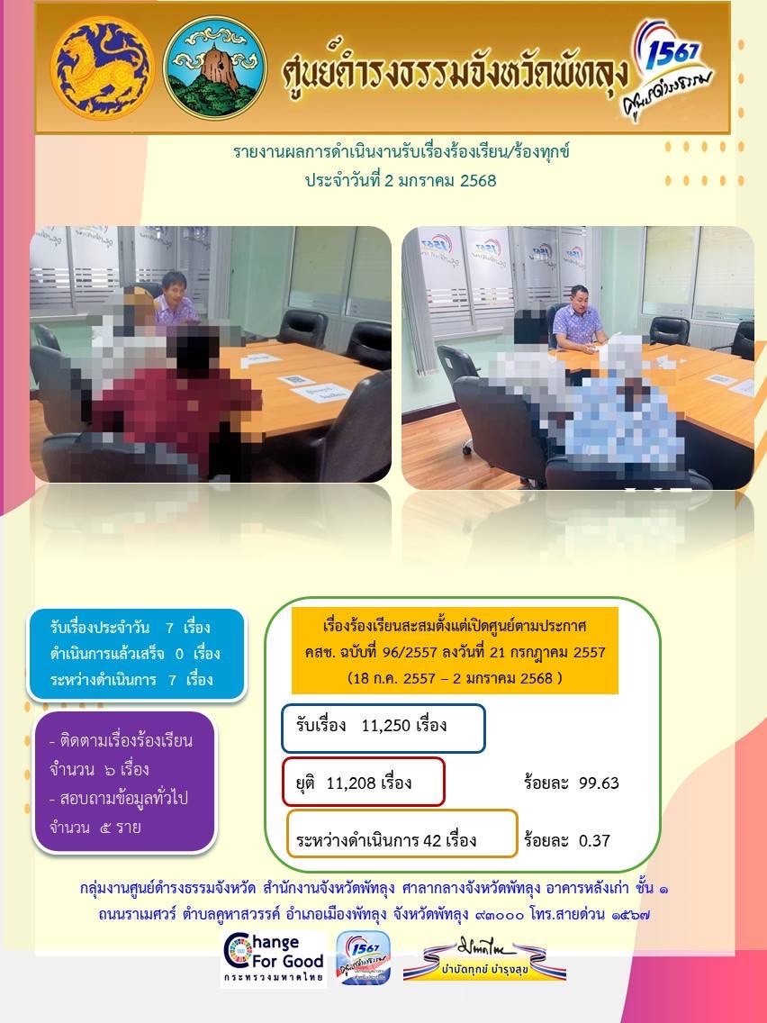 สถิติรับเรื่องร้องเรียน/ร้องทุกข์ วันที่ 2 มกราคม 2568