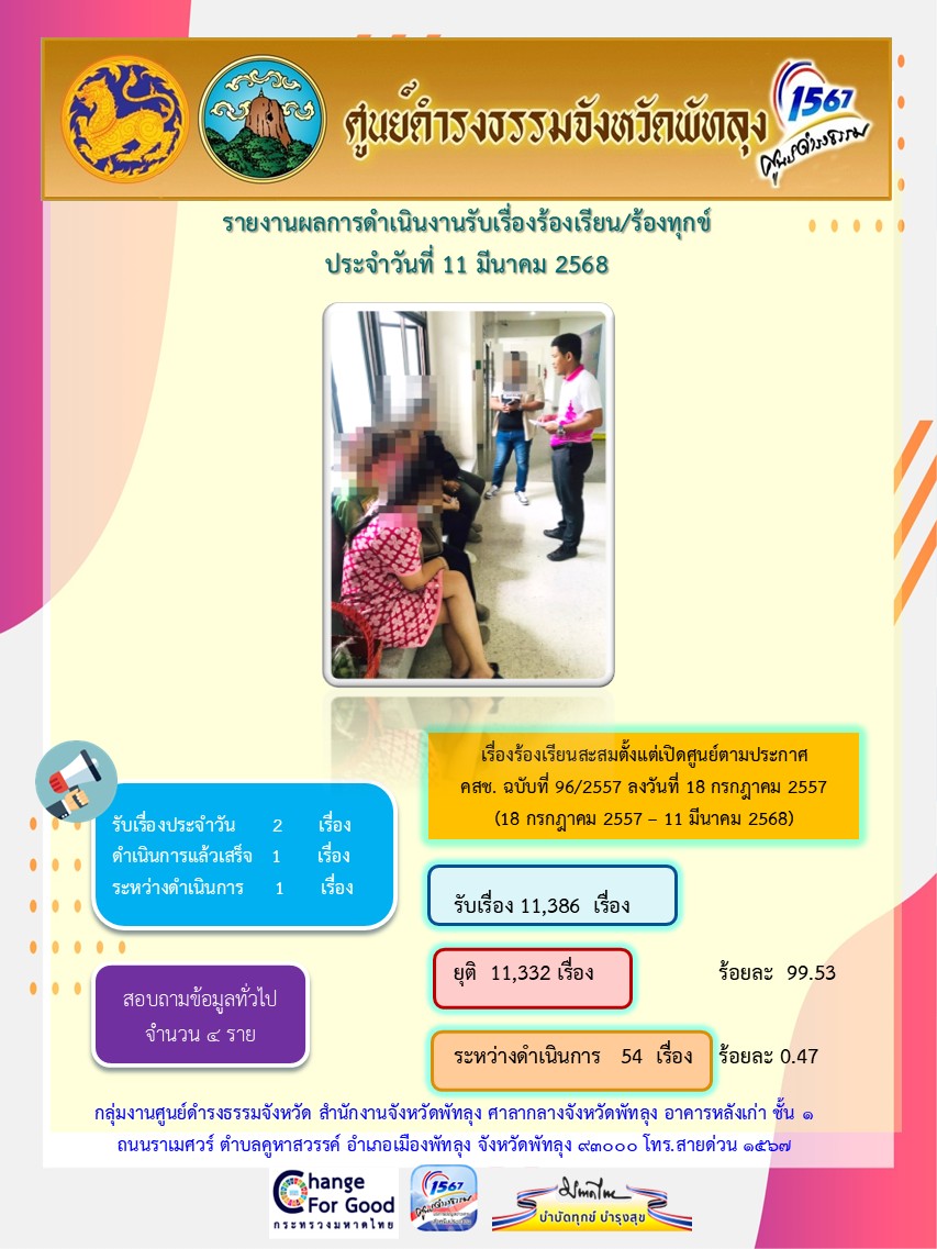 สถิติรับเรื่องร้องเรียน/ร้องทุกข์ วันที่ 11 มีนาคม 2568